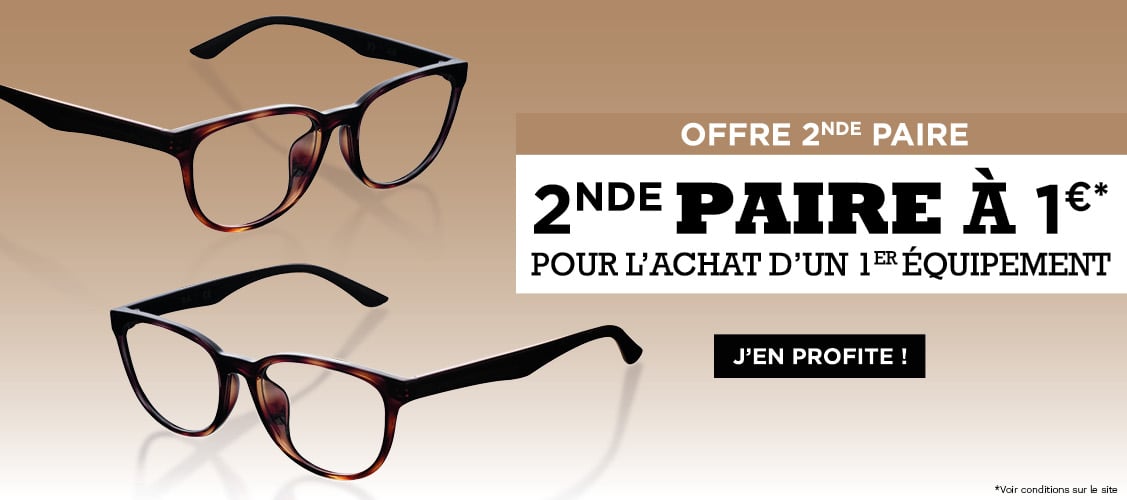 Votre 2 eme paire à 1€ même en progressif pour l'achat d'un premier équipement
